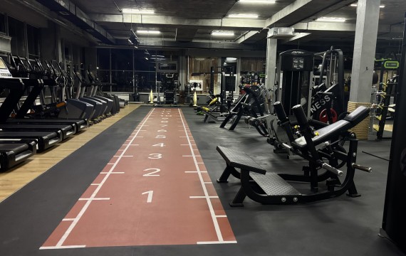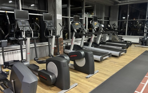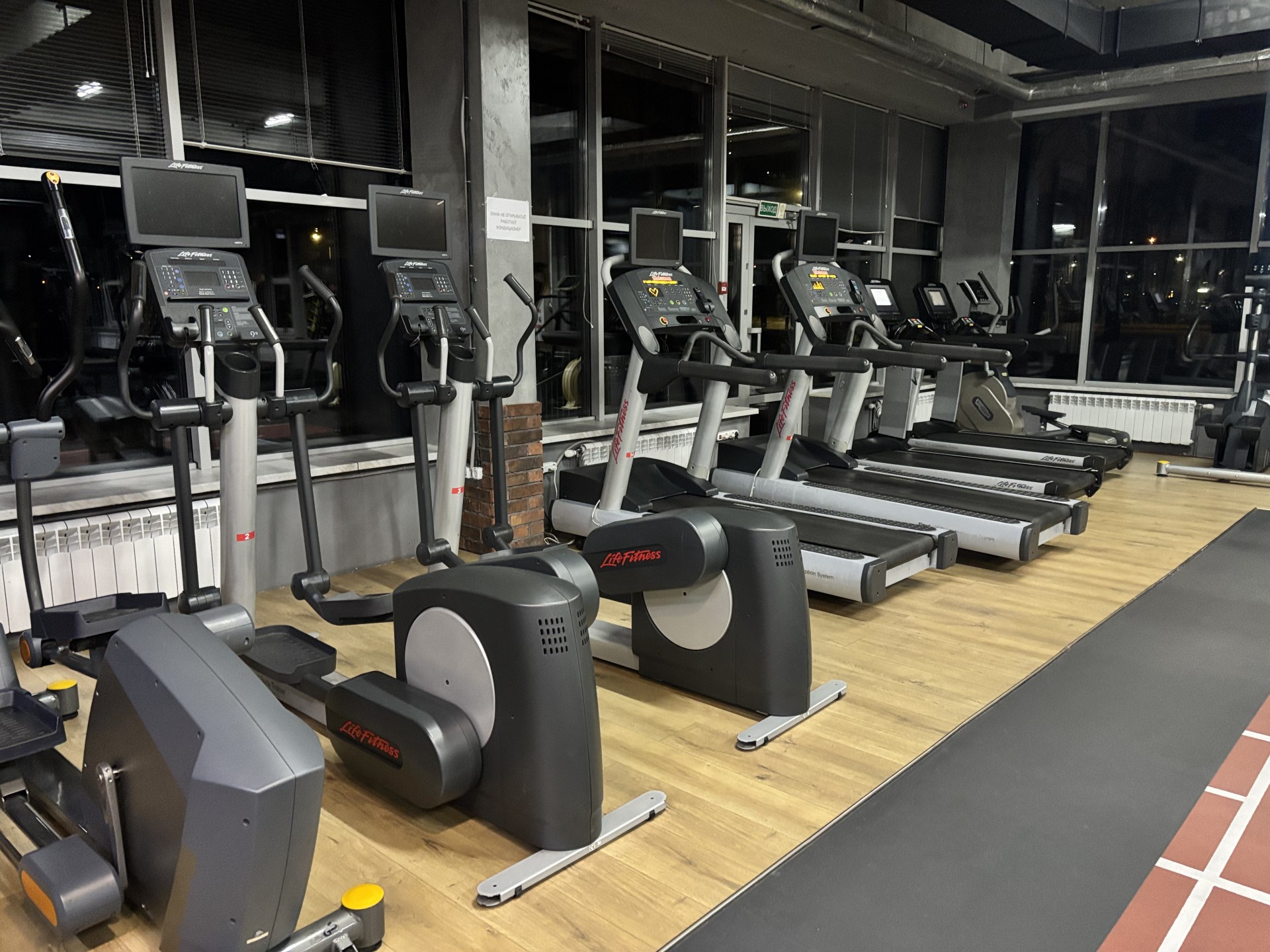 Фитнес центр располагается на первом этаже здания центра и занимает площадь более 1200 м2 . Тренажёрный зал и кардио зона оснащены профессиональным высококлассным оборудованием. Для групповых занятий предусмотрены два гимнастических зала, помещение для проведения занятий по аэробике, йоге, пилатесу. В распоряжении посетителей удобные раздевалки и современные душевые.